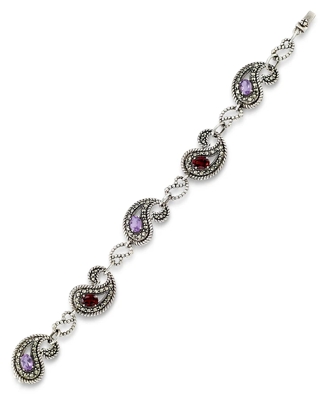 Amethyst (1-3/4 ct. t.w.), Garnet (1-3/4 ct. t.w) & Marcasite Paisley Link Bracelet in Sterling Silver