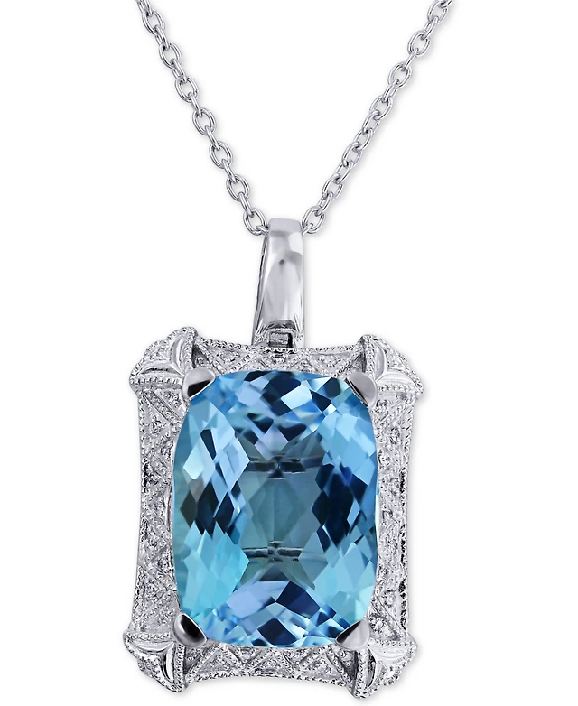 Blue Topaz (20 ct. t.w.) and White Topaz (3/8 ct. t.w.) Large Oval Pendant Necklace in Sterling Silver