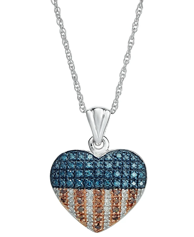 Diamond Flag Heart Pendant Necklace in Sterling Silver (1/3 ct. t.w.)
