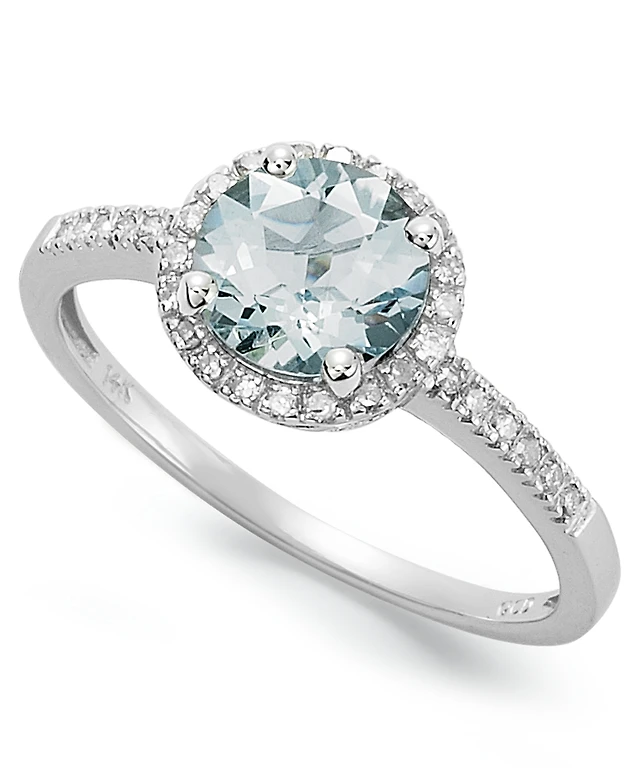 Aquamarine (1 ct. t.w.) and Diamond (1/8 ct. t.w.) Ring in 14k White Gold