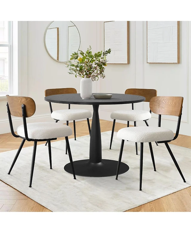 Maison Boucle 5-Pc Set Round Dining Table & Upholstered Chairs for Kitchen or Small Spaces