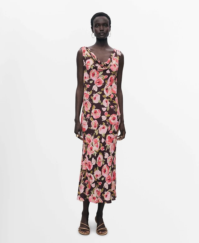 Mango Women's Draped Neck Floral Dress