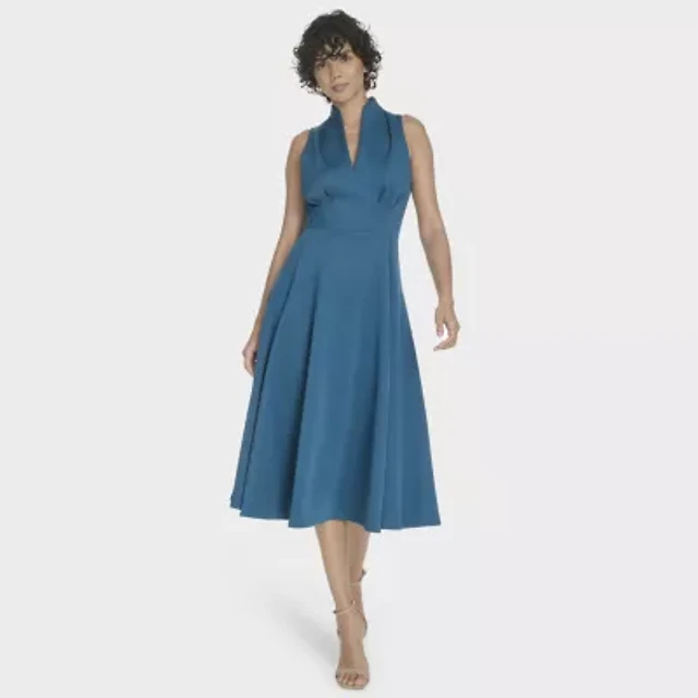 Marc New York Womens 3/4 Sleeve Abstract Midi Fit + Flare Dress
