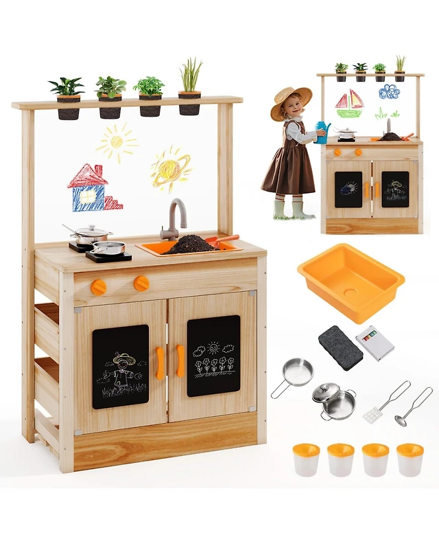 Kids Outdoor Wooden Backyard Sandbox with Built-in Corner Seating