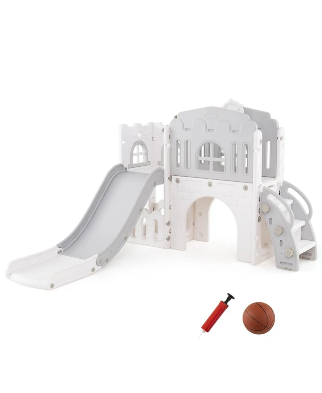 9-in-1 Toddler Slide L-Shaped with Basketball Hoop and Steering Wheel