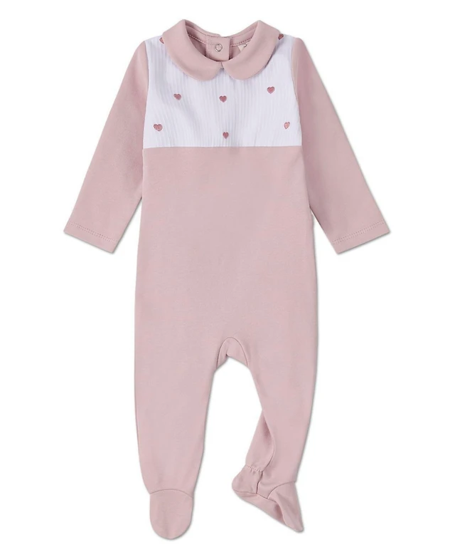 MeMoi Baby Girls 3 Piece 100% Pima Footie Set with Peter Pan Collar and Embroidered Hearts