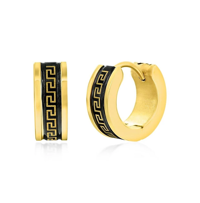 Stainless Steel Diamond Design Huggie Hoop Earrings
