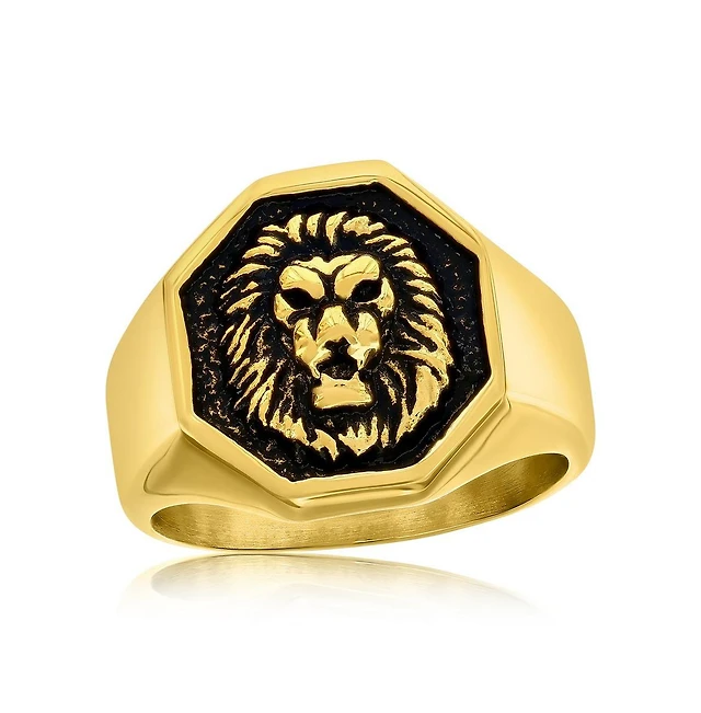 Stainless Steel Square Textured Eagle Design Ring Gold Plated