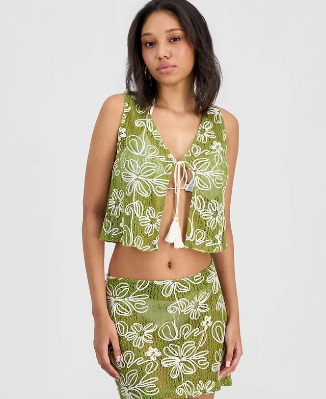 Miken Juniors' Tie-Front Floral Cover-Up Vest, Macy's Exclusive
