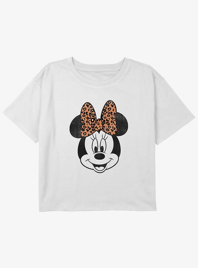 Disney Minnie Mouse Leopard Bow Girls Youth Crop T-Shirt