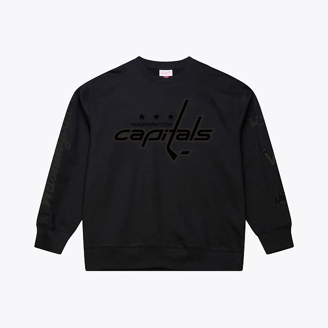 Men's Mitchell & Ness Black Washington Capitals Phantom Fleece Crew Neck Sweatshirt