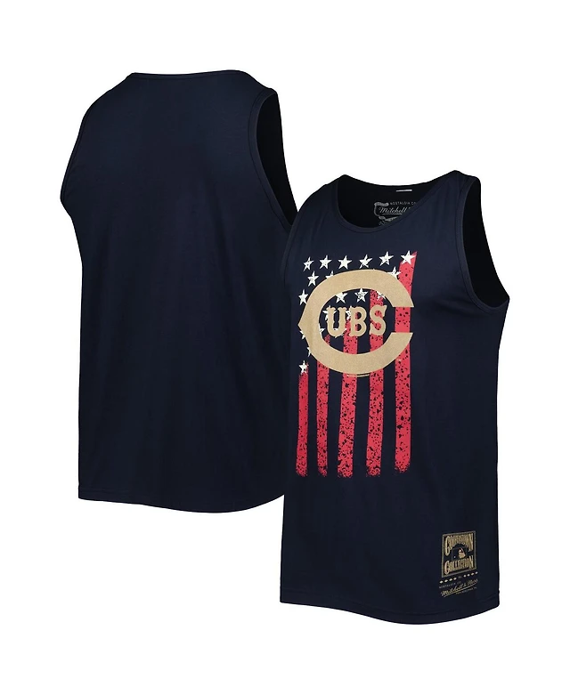 Men's Mitchell & Ness Navy Chicago Cubs Cooperstown Collection Stars and Stripes Tank Top