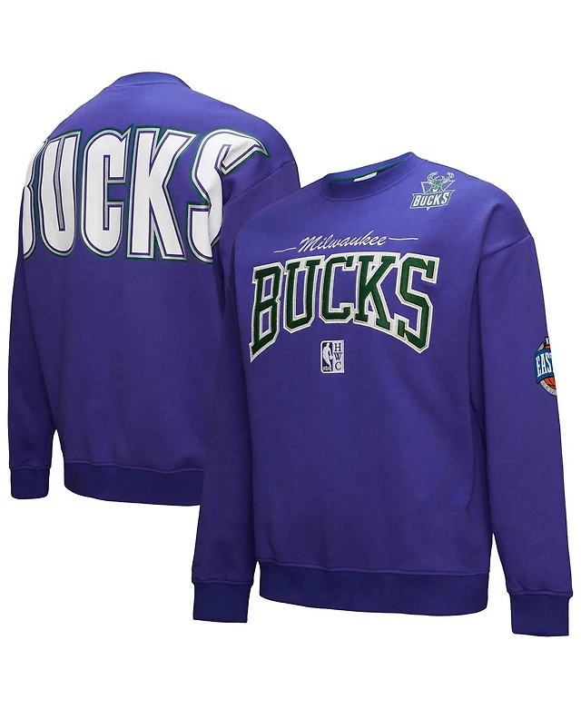 Mitchell & Ness Men's Purple Milwaukee Bucks Hardwood Classics There Back 2.0 Vintage Pullover Sweatshirt