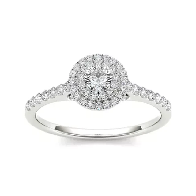 I-J / I2-I3 Womens 1 CT. T.W. Natural White Diamond 10K Gold Pear Side Stone Halo Engagement Ring