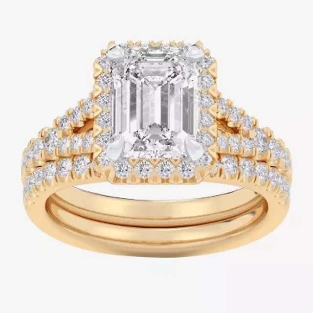 (G-H / Si1-Si2) Womens 3 CT. T.W. Lab Grown White Diamond 14K Gold Side Stone Bridal Set