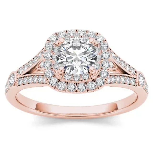 Certified (F / Si1) Womens 1 3/8 CT. T.W. Lab Grown White Diamond 10K Rose Gold Cushion Side Stone Halo Engagement Ring
