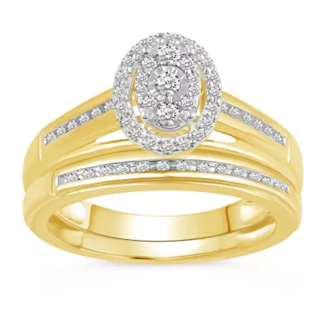 Womens 2 CT. T.W. Natural White Diamond 14K Gold Round Halo Bridal Set