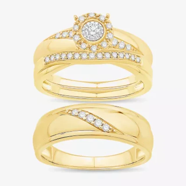 Unisex Adult 3/8 CT. T.W. Natural White Diamond 10K Gold Halo Side Stone Ring Set