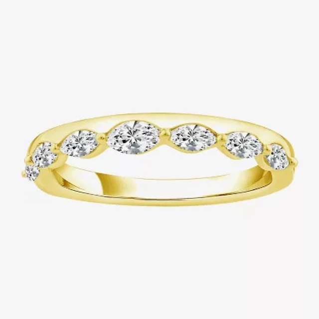 (I / Si2) Womens 1/2 CT. T.W. Lab Grown White Diamond 10K Gold Round Wedding Ring Enhancer