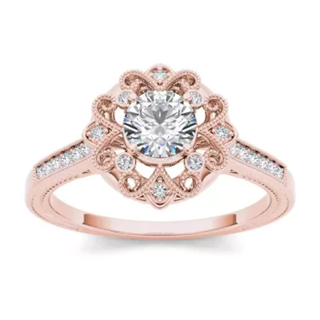 Womens 1 CT. T.W. Natural White Diamond 10K Rose Gold Cushion Halo Engagement Ring