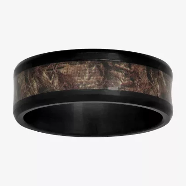 Mens 10MM Diamond Accent Natural Black Diamond Stainless Steel Cross Wedding Band
