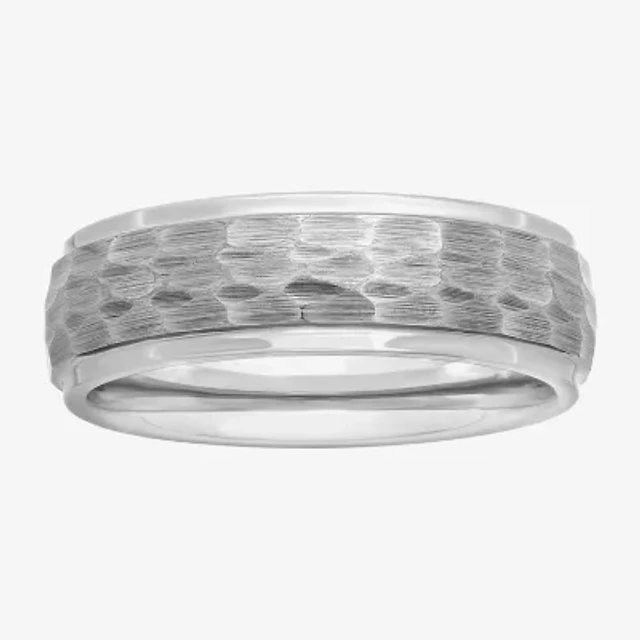 Personalized Mens 8mm Comfort Fit Stainless Steel Brick Pattern Wedding Band
