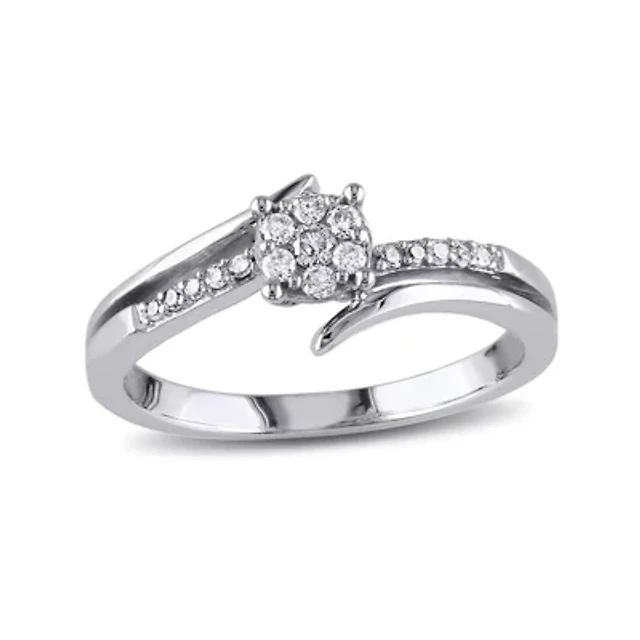 Womens 1/3 CT. T.W. Natural White Diamond Sterling Silver Round Cushion Side Stone Crossover Engagement Ring