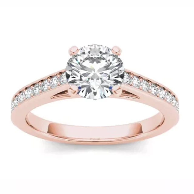 14K Rose Gold 1 CT Round Natural Diamond Ring