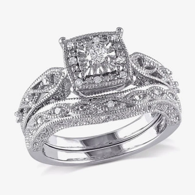 Womens 1/ CT. T.W. Natural White Diamond 10K Gold Cushion Halo Bridal Set