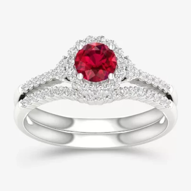 Modern Bride Gemstone Womens 1/2 CT. T.W. Genuine Green Emerald 10K White Gold Halo Bridal Set