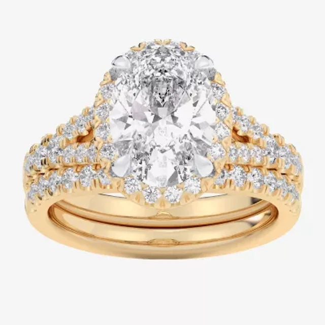 (G-H / Si1-Si2) Womens 1 5/8 CT. T.W. Lab Grown White Diamond 14K Gold Oval Side Stone Halo Bridal Set