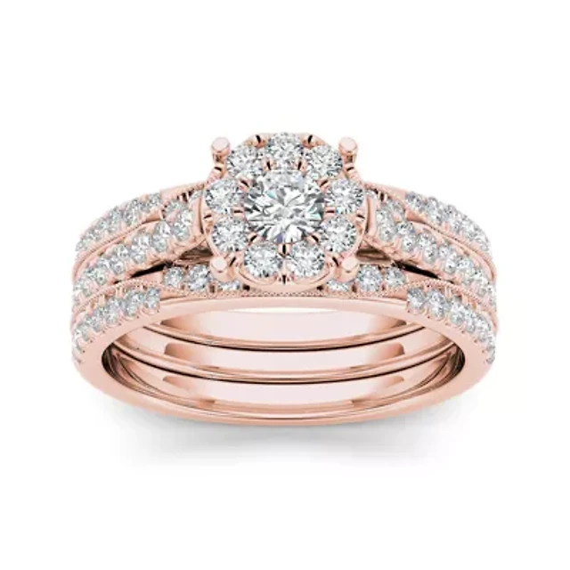 1 CT.T.W. Natural Diamond Halo 10K Rose Gold Engagement Ring Set