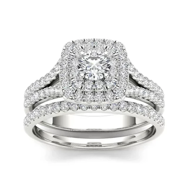 1/2 CT.T.W. Natural Diamond 10K White Gold Halo Bridal Ring Set