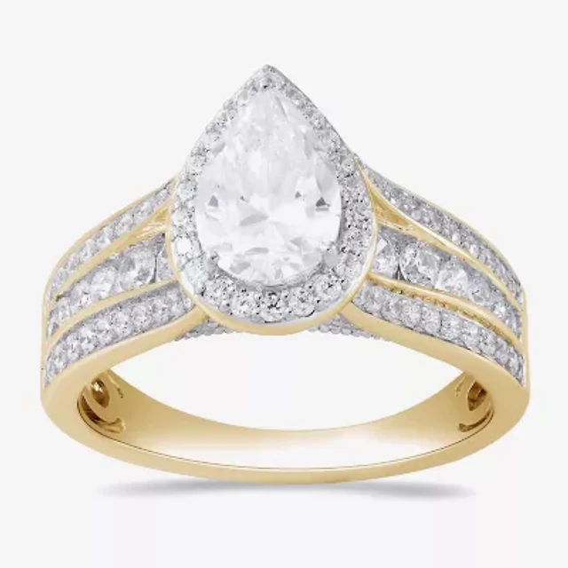 (G / I1) Womens 2 CT. T.W. Lab Grown White Diamond 10K Gold Halo Engagement Ring