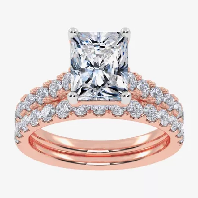 Signature By Modern Bride (G-H / Vs2-Si1) Womens 3 CT. T.W. Lab Grown White Diamond 14K Gold Cushion Side Stone Bridal Set
