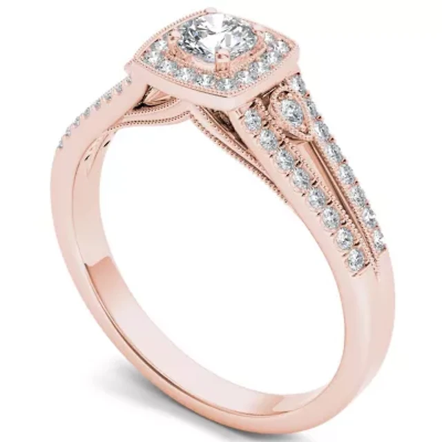 Womens 1 CT. T.W. Natural White Diamond 10K Gold Side Stone Halo Engagement Ring