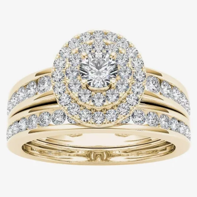 Signature By Modern Bride Womens 3/4 CT. T.W. Natural White Diamond 14K Gold Round Halo Bridal Set