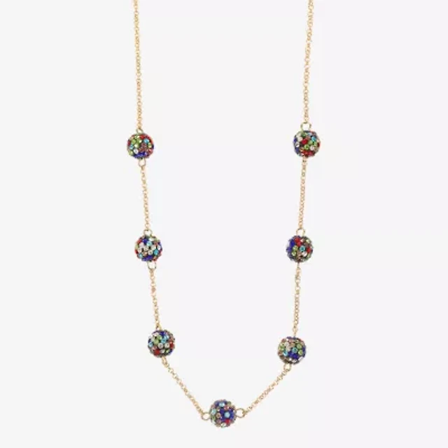 Monet Jewelry Gold Tone Halo Frontal Womens Glass 18 Inch Y Necklace