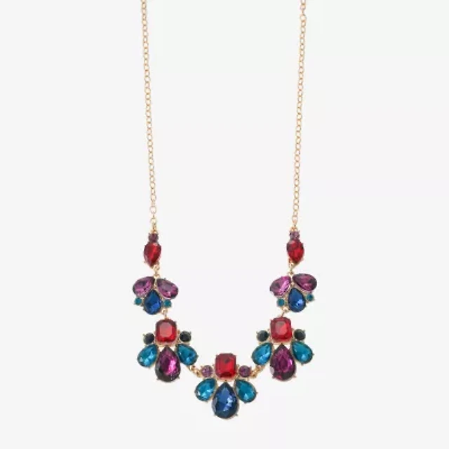 Monet Jewelry Gold Tone Frontal Womens Multi Color 17 Inch Collar Necklace