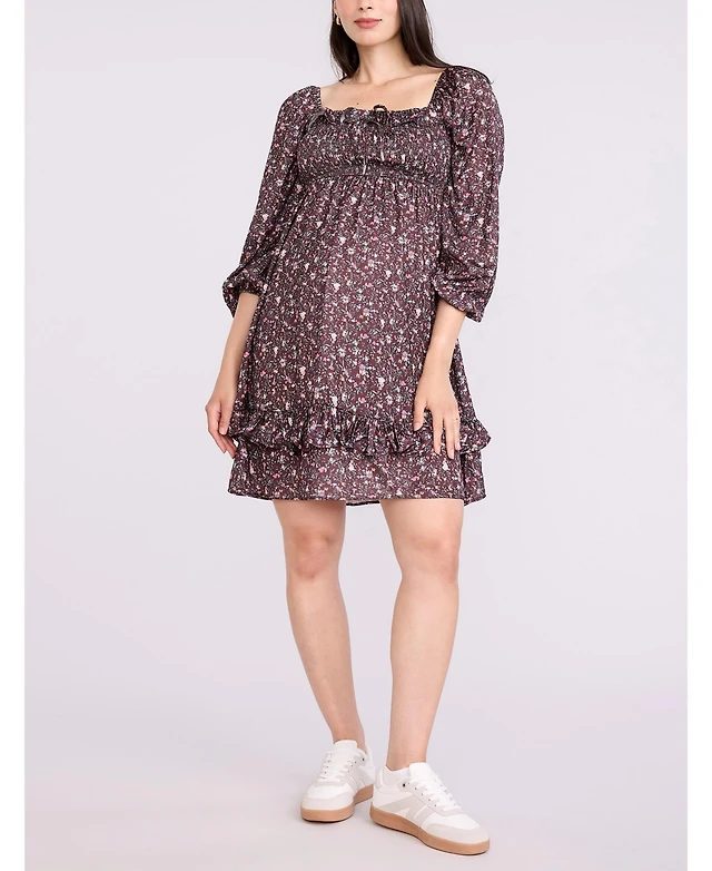 Motherhood Maternity Smocked Square Neck Long Sleeve Babydoll Top