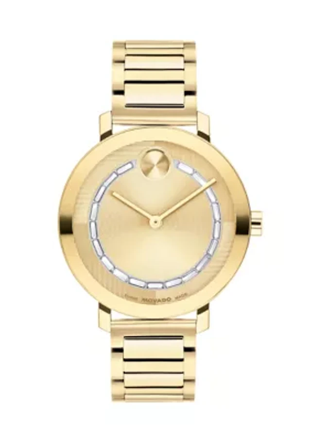 Movado Women's Bold Bangles Swiss Quartz Ionic Plated Gold-Tone Steel Watch 28mm