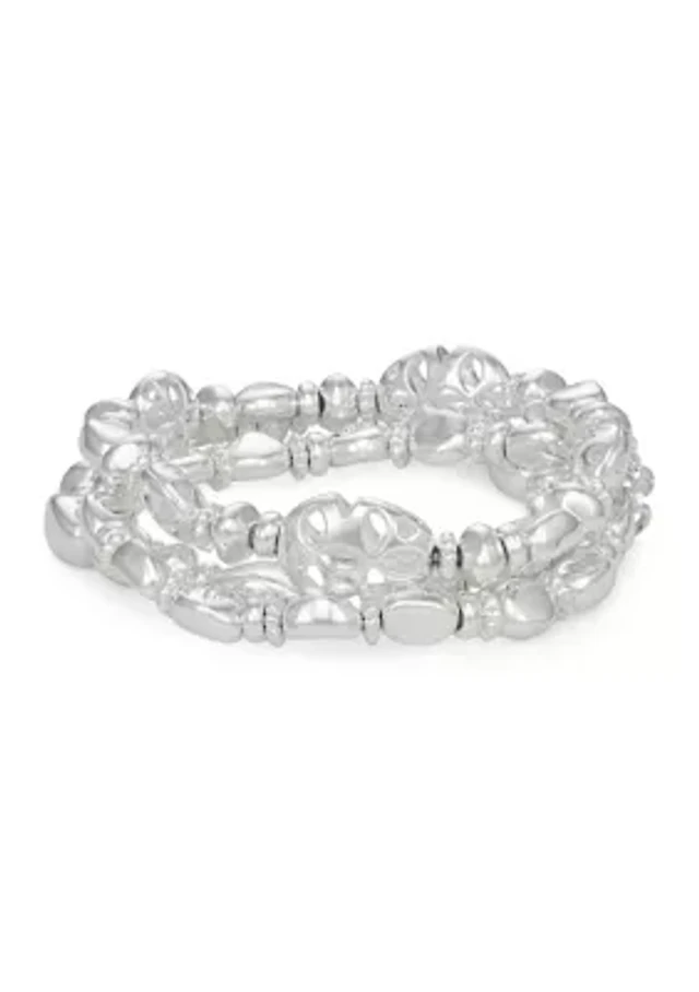 Silver Tone Stretch Bracelet Set