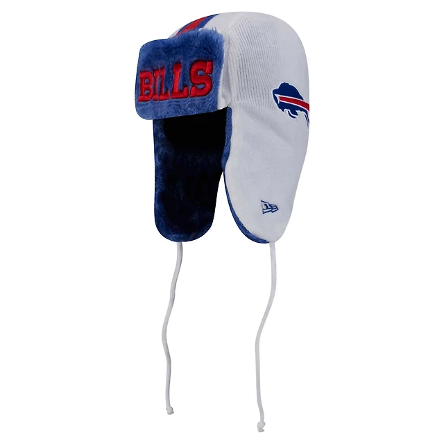 Men's New Era White Buffalo Bills Helmet Head Trapper Knit Hat