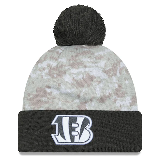 Youth New Era White/Graphite Cincinnati Bengals 2024 Salute To Service Cuffed Pom Knit Hat