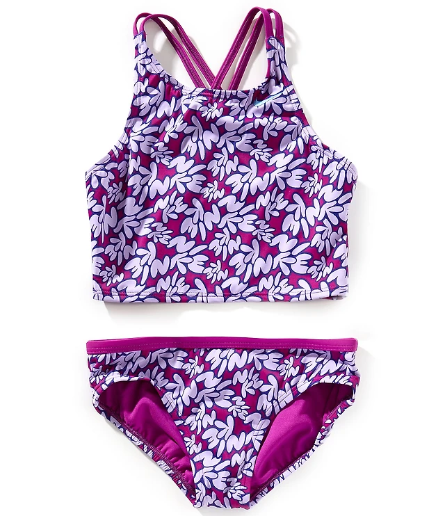 Nike Big Girls Bubble Scripts Spiderback Midkini 2-Piece Swim Suit