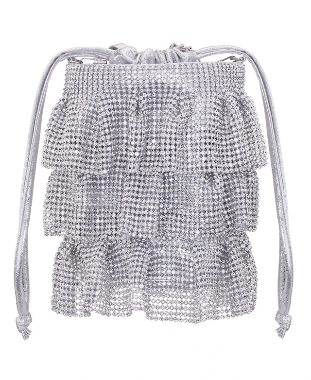 Nina 3-Tiered Crystal Mesh Ruffle Pouch Bag