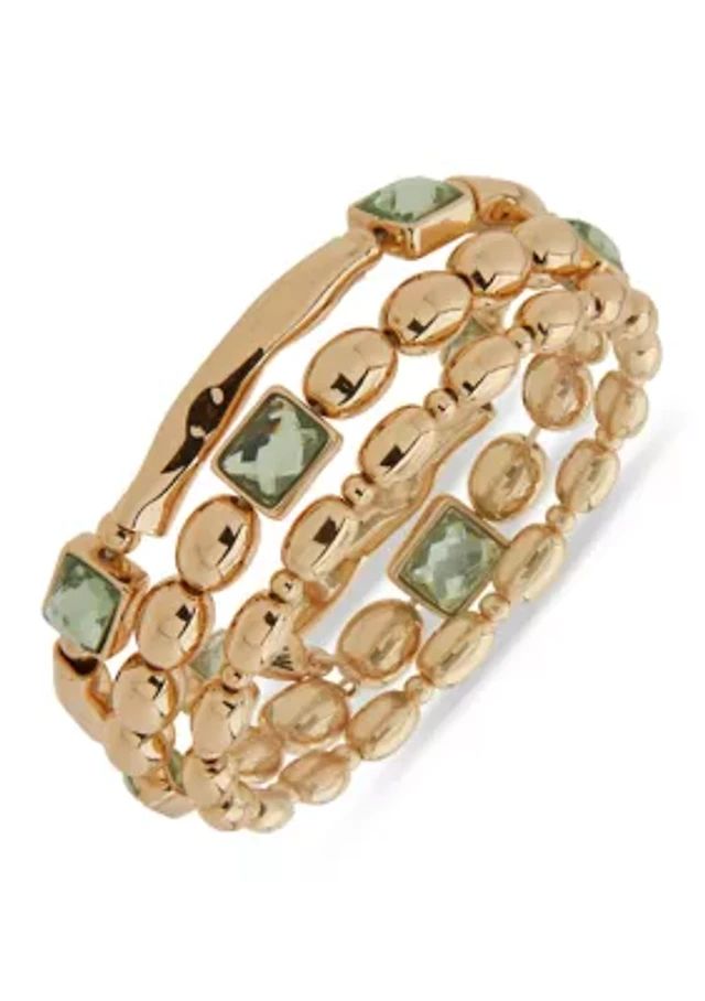 Gold-Tone Multi Dogtag Stretch Bracelet Set