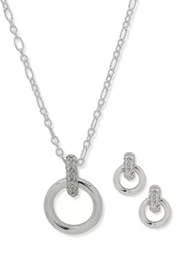 Silver Tone Pearl Crystal 59 Millimeter Click Top Hoop Earrings