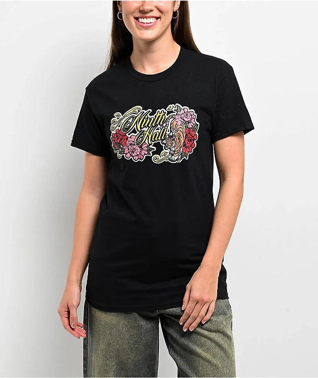 Ninth Hall Floral Tiger Vintage Black T-Shirt
