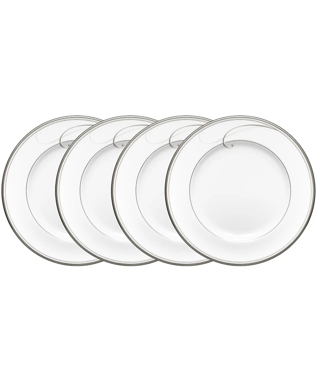 Noritake Silver Colonnade 4 Piece Bread Butter/Appetizer Plates Set, Service for 4